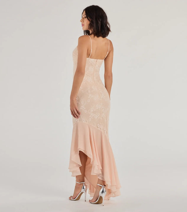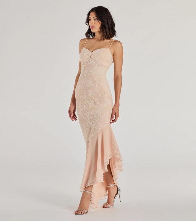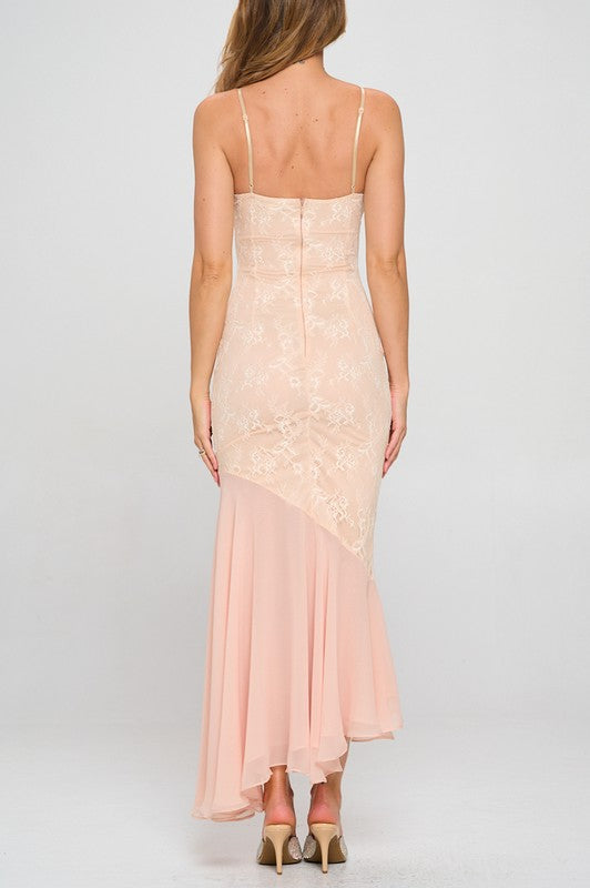 Podnieś swój wieczór z Asymetryczną Suknią Koronkową Serena. Ten model został zaprojektowany, aby oczarować, łącząc elegancję z odrobiną romansu.