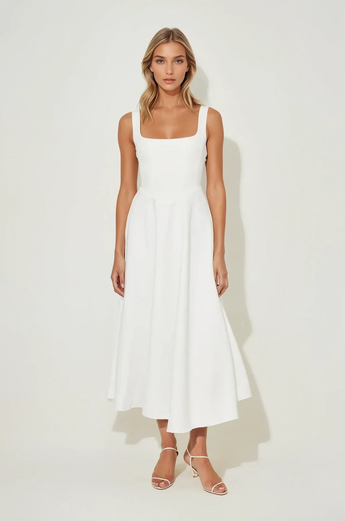 Odkryj idealne połączenie klasycznego stylu i nowoczesnego akcentu z Sukienką Midi Sofia — niezbędny element dla wyrafinowanej kobiety, która docenia elegancję w każdej chwili.