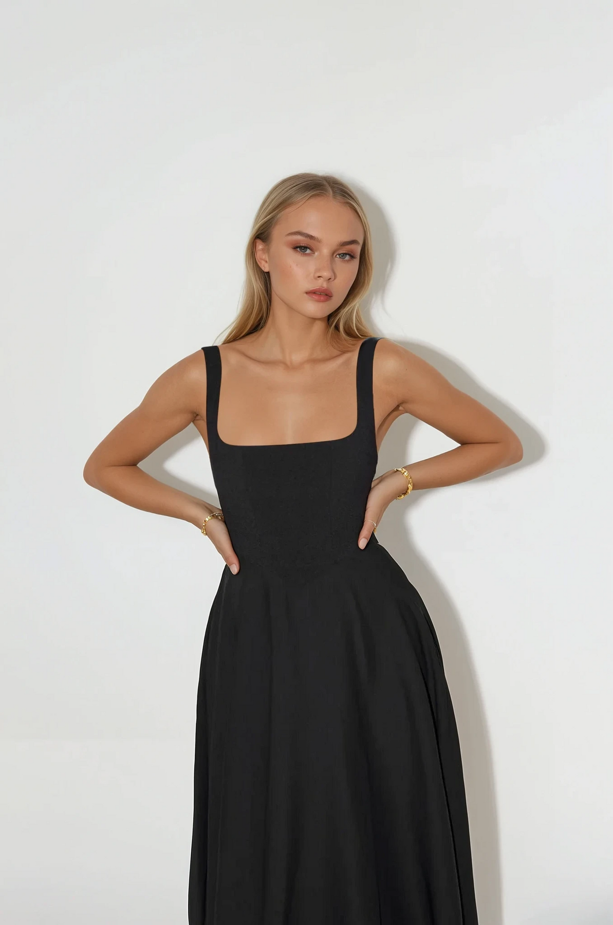 Podnieś swoją garderobę dzięki Sukience Midi Sofia, gdzie ponadczasowa elegancja spotyka nowoczesny styl. Idealna na każdą okazję, ta sukienka z łatwością przechodzi z dnia na noc.