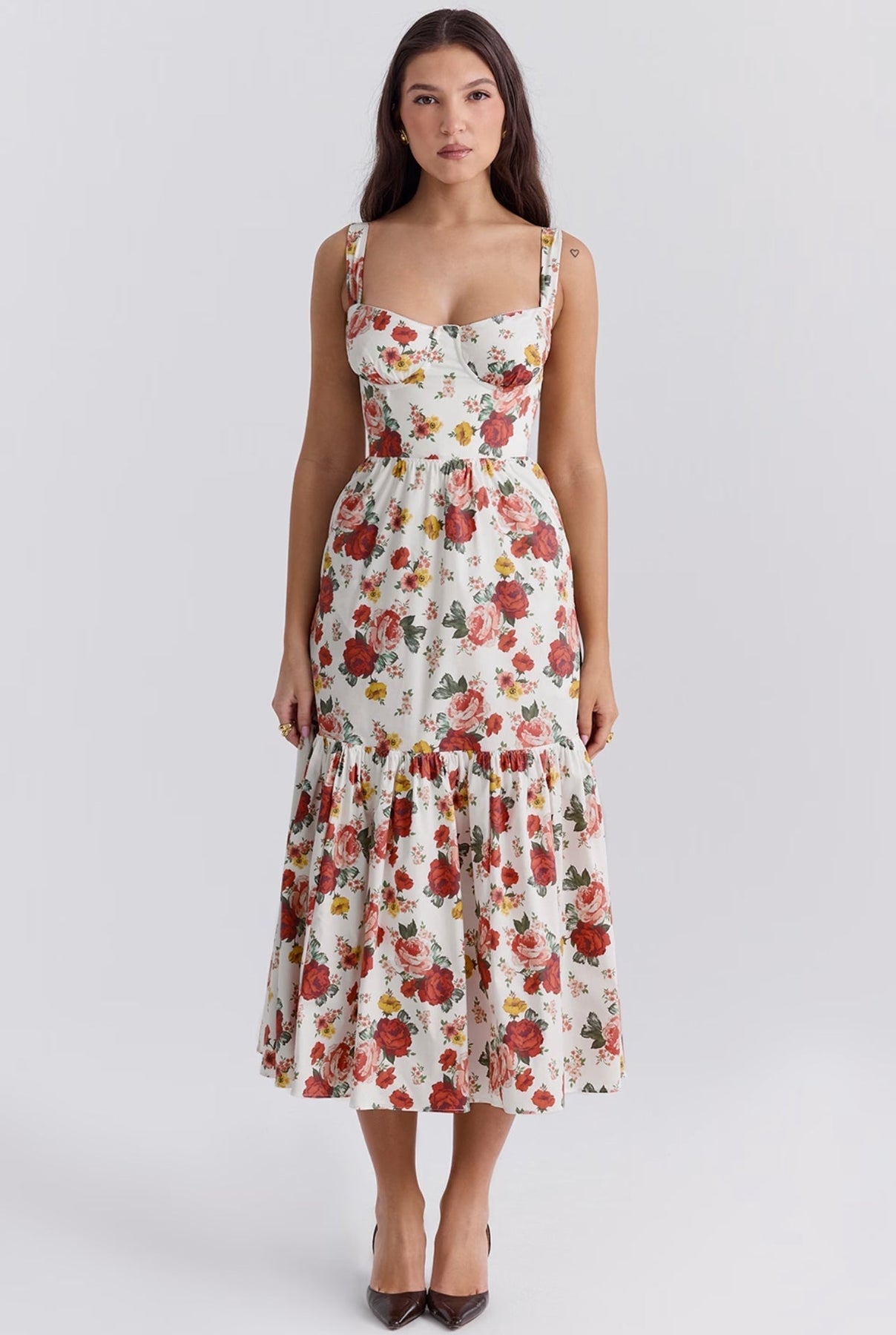 Odkryj esencję elegancji z naszą Kwiatową Sukienką Midi Marielle, gdzie ponadczasowy urok spotyka nowoczesną wyrafinowanie.