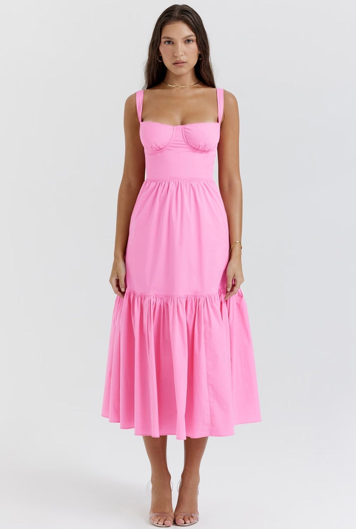 Ze swoim urokliwym dekoltem w kształcie serca i delikatnymi falbankami, sukienka Marielle dodaje odrobinę kobiecości na każdą okazję. Styliuj ją z sandałami na obcasie i kapeluszem przeciwsłonecznym na casualowy brunch, lub podnieś swój wygląd dzięki szpilkom i wyrazistej biżuterii na wieczorne wydarzenia.
