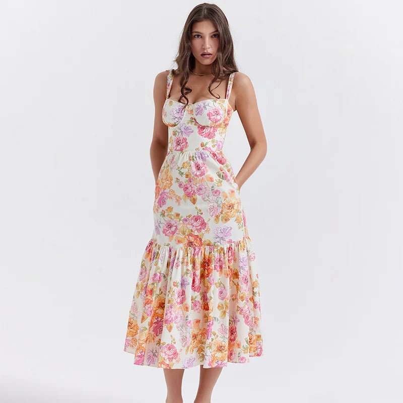 Przyjmij bezwysiłkowy styl i piękno natury z Kwiatową Sukienką Midi Marielle. Ten wszechstronny element to niezbędny dodatek do Twojej garderoby, idealny na przyjęcia w ogrodzie, wesela lub każdą specjalną okazję.