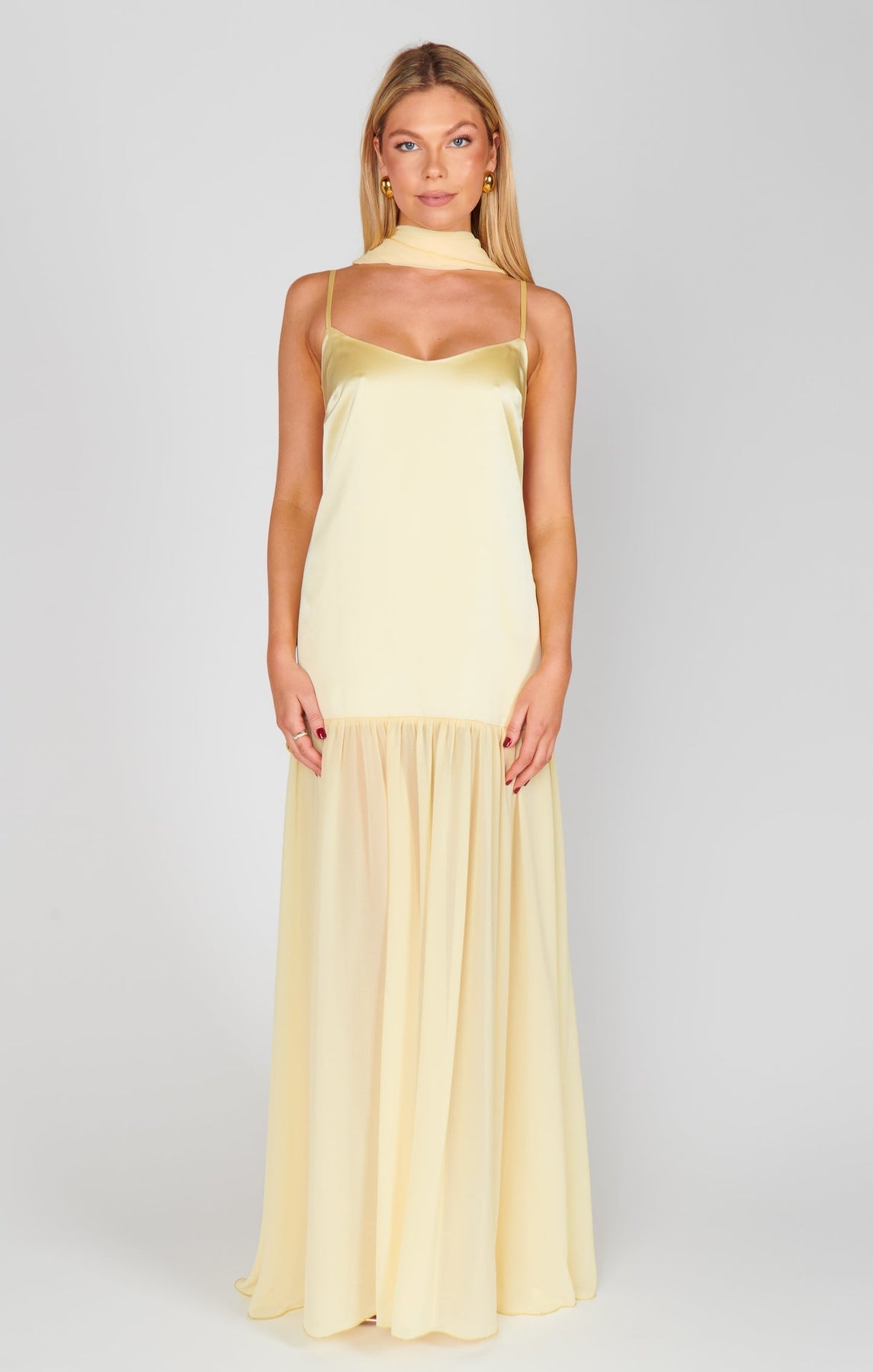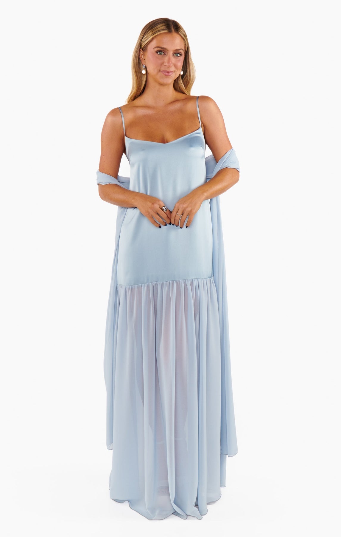 Wykonana z lekkiego, błyszczącego satynu, 'Lavienne' ma sylwetkę w stylu slip, która z wdziękiem opływa twoją figurę. Regulowane ramiączka zapewniają idealne dopasowanie, a przezroczysty, marszczony dół dodaje marzycielskiego akcentu, który unosi się wokół twoich kostek.