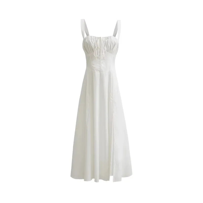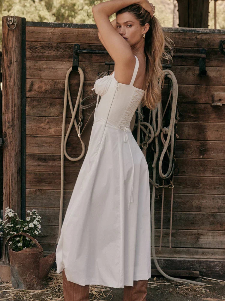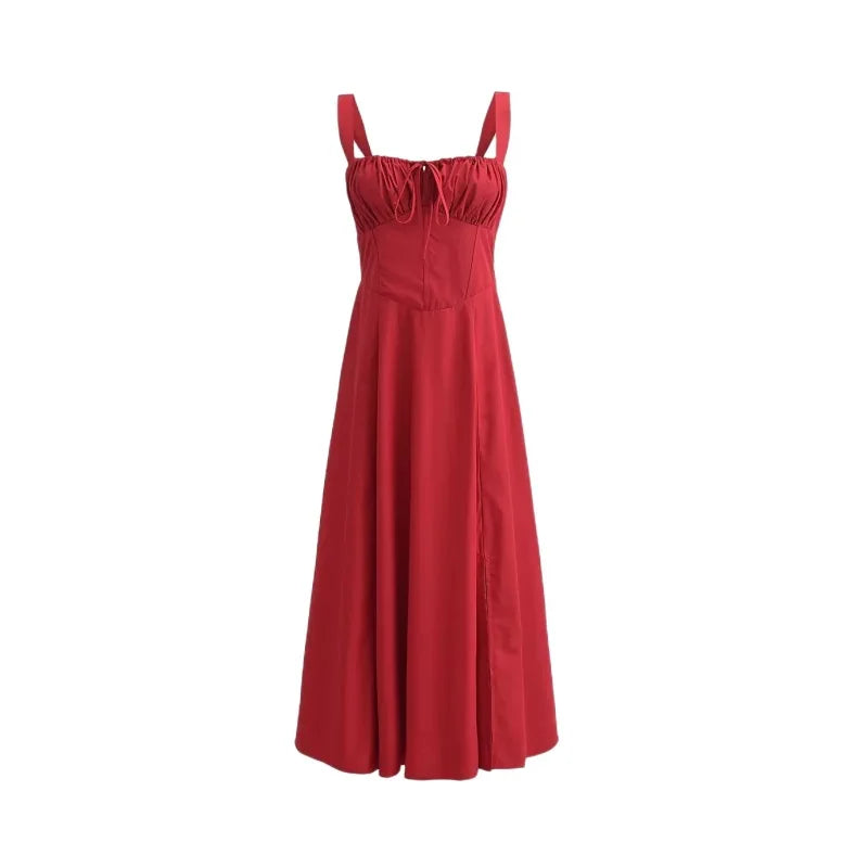 Wykonana z luksusowej mieszanki poliestru i spandexu, sukienka Lola ma korzystny gorsetowy tył, który podkreśla talię, zapewniając dopasowany krój. Zgromadzony dekolt, ozdobiony delikatnym wiązaniem, dodaje bajkowego uroku, a kuszące rozcięcie z boku odsłania odpowiednią ilość nogi, dodając uwodzicielskiego akcentu.