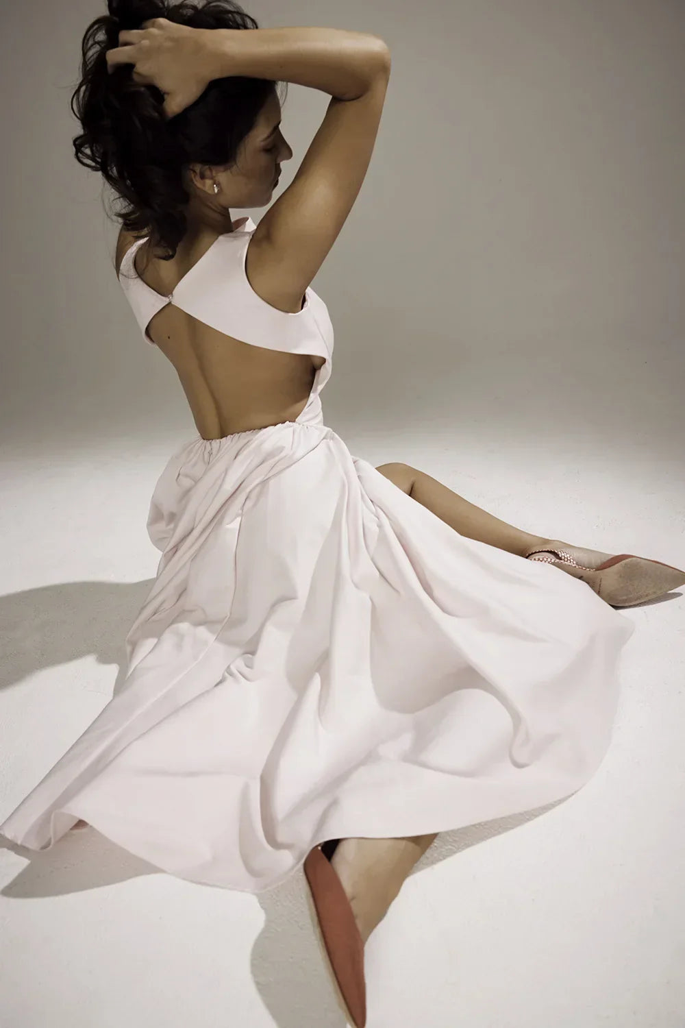 Ulepsz swoją garderobę dzięki naszej Eleganckiej Sukience Midi z Odkrytym Tyłem w Kształcie A. Ten oszałamiający model został zaprojektowany, aby zachwycać, oferując doskonałe połączenie wyrafinowania i nowoczesnego uroku.