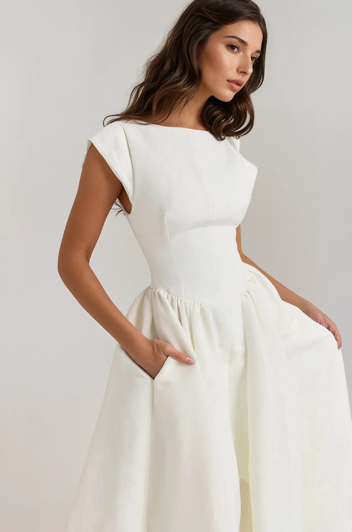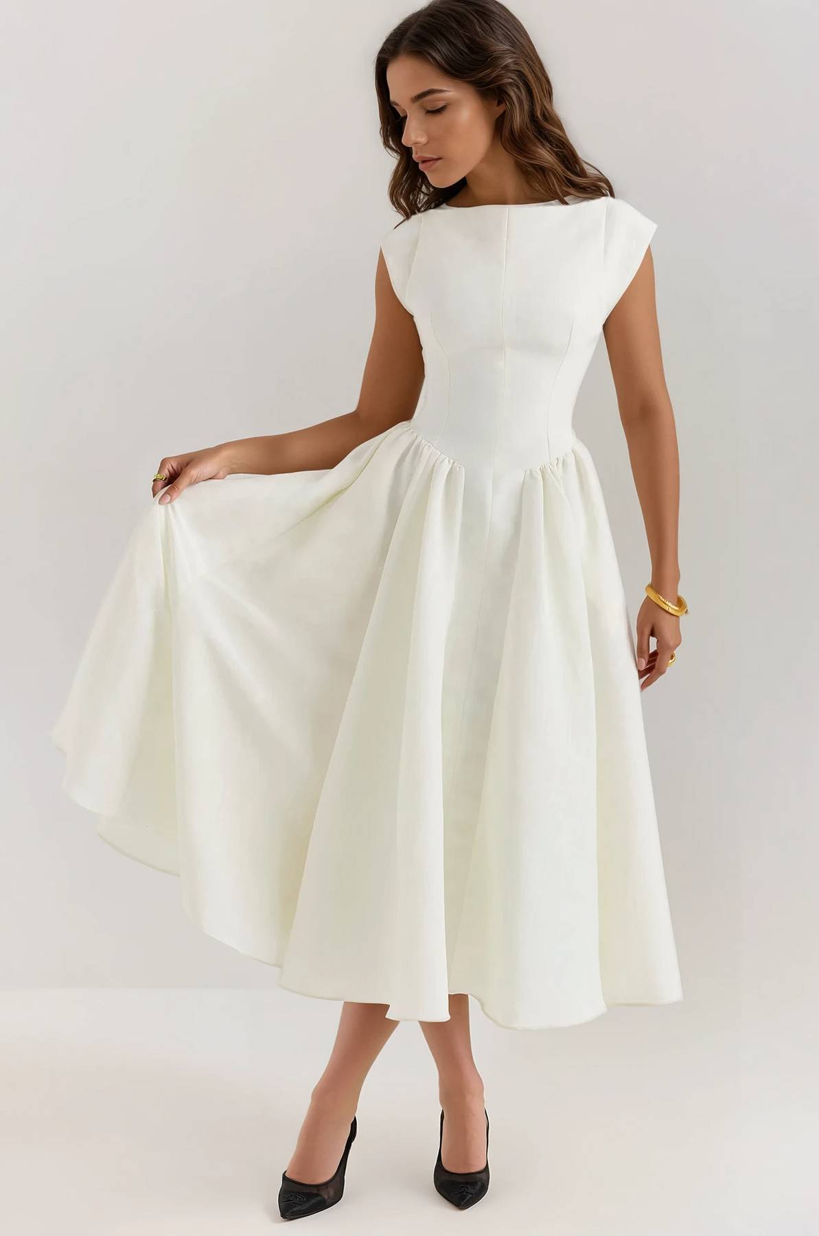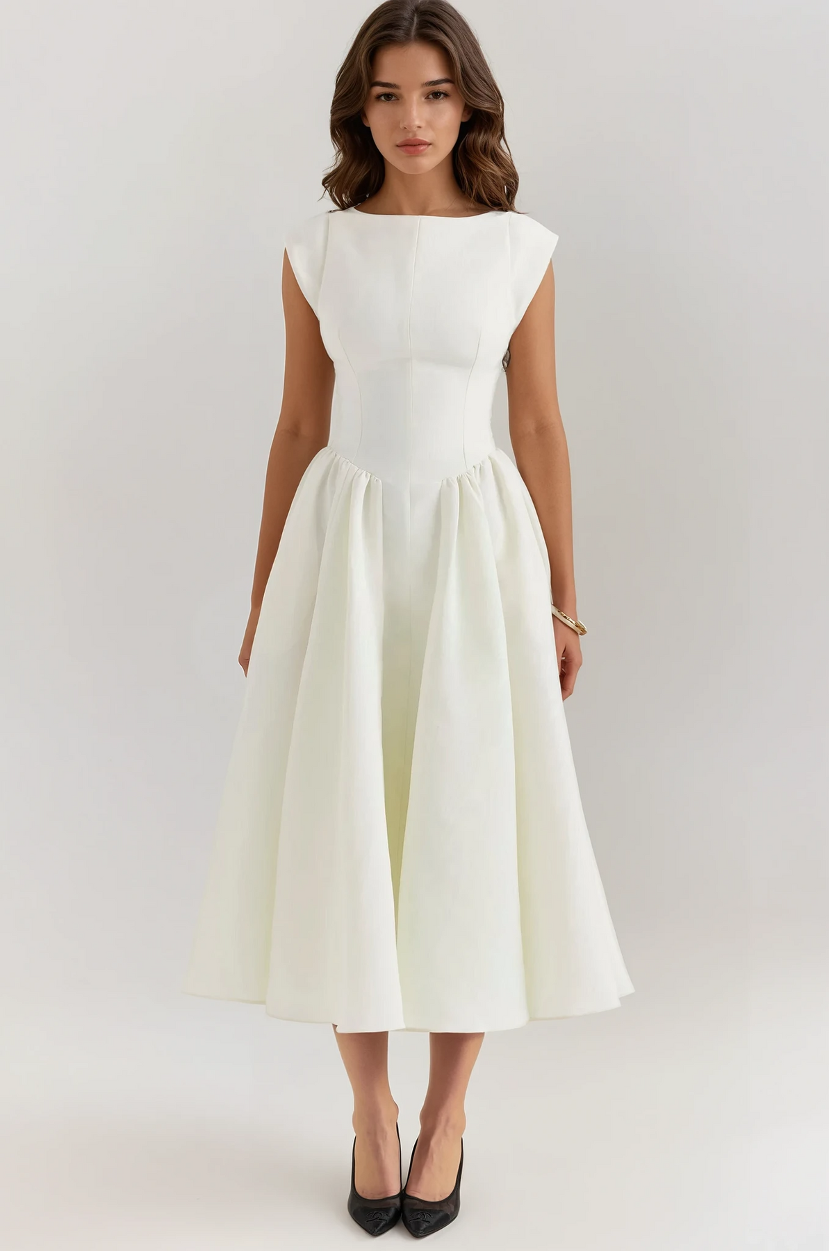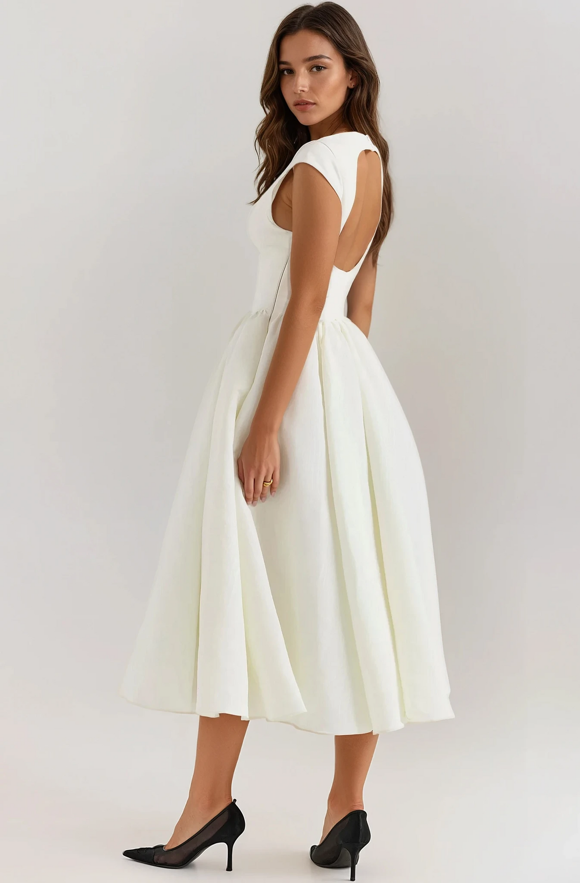 Sukienka Midi z Plisowaniem bez Pleców - Evangeline