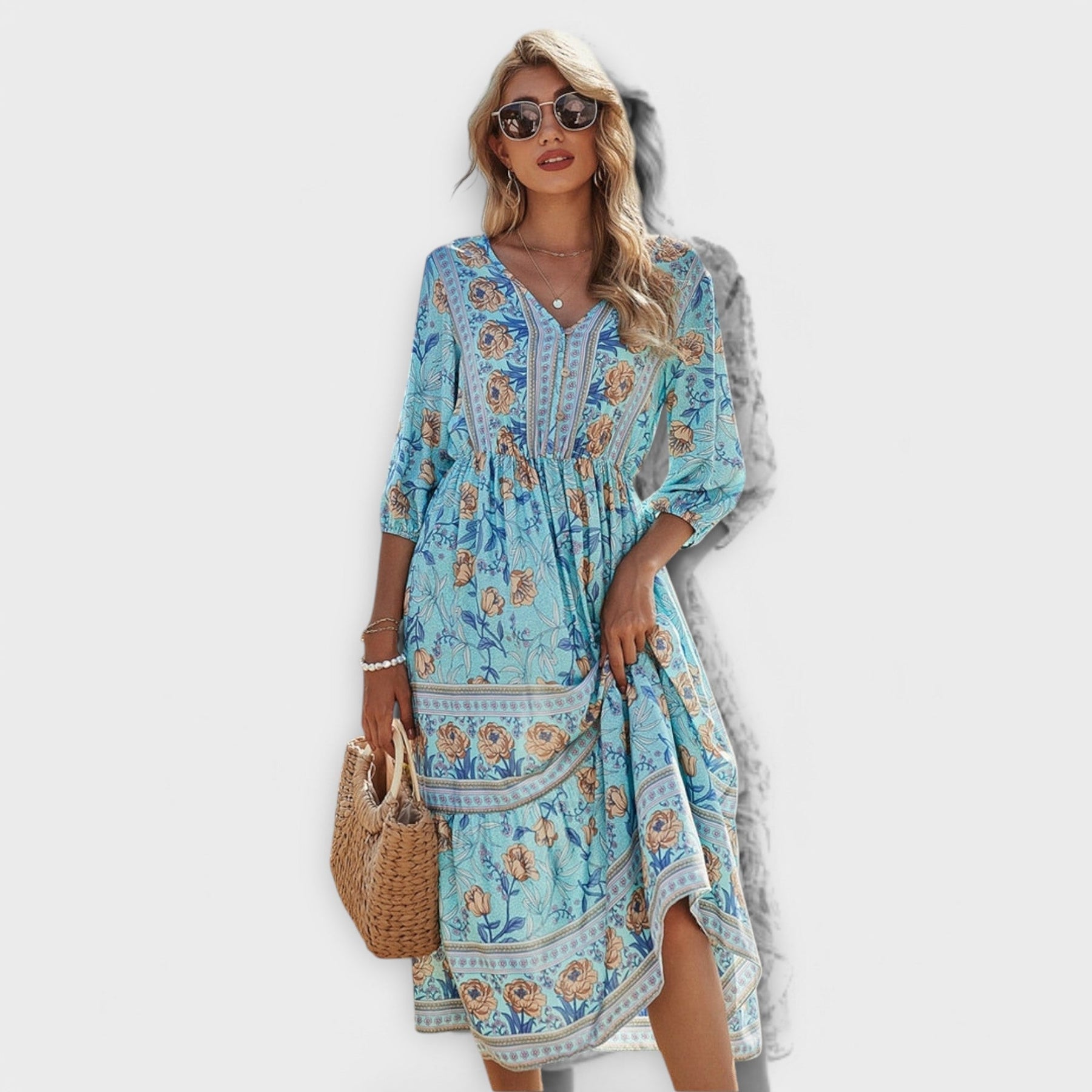 Kluczowe cechy: Wykonana z wyrafinowanym kwiatowym wzorem, ta sukienka oferuje korzystny krój, który idealnie nadaje się zarówno na codzienne wyjścia, jak i na formalne wydarzenia.